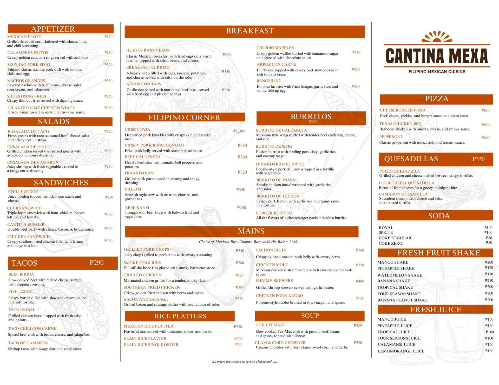 Bringing together the soul of Filipino cuisine and the vibrant flair of Mexico, Cantina Mexa serves familiar comforts with an exciting twist. Think fresh, zesty flavors, local ingredients elevated with Mexican spice, and dishes that feel both adventurous and close to home.
